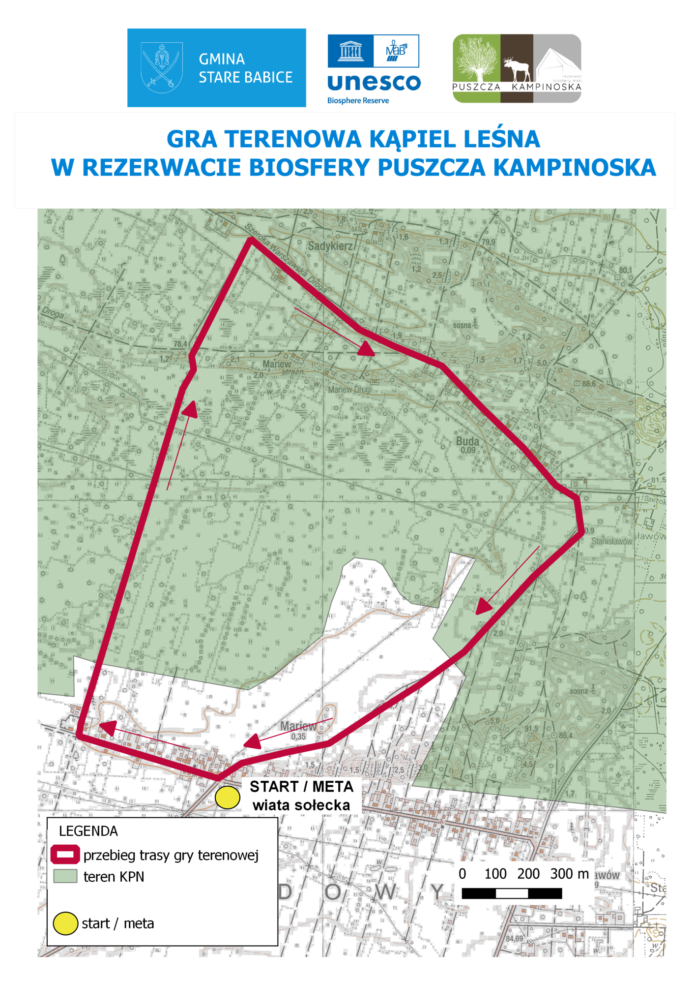 Trasa sobotniej gry terenowej z okazji Dni Regionu Puszczy Kampinoskiej.