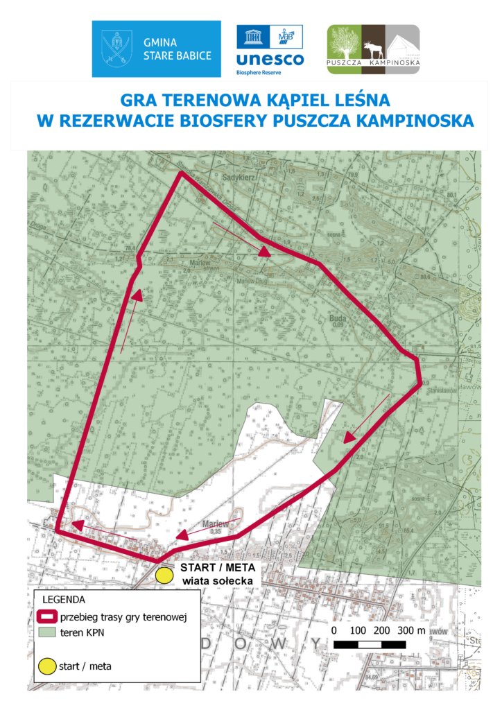 Trasa sobotniej gry terenowej z okazji Dni Regionu Puszczy Kampinoskiej.