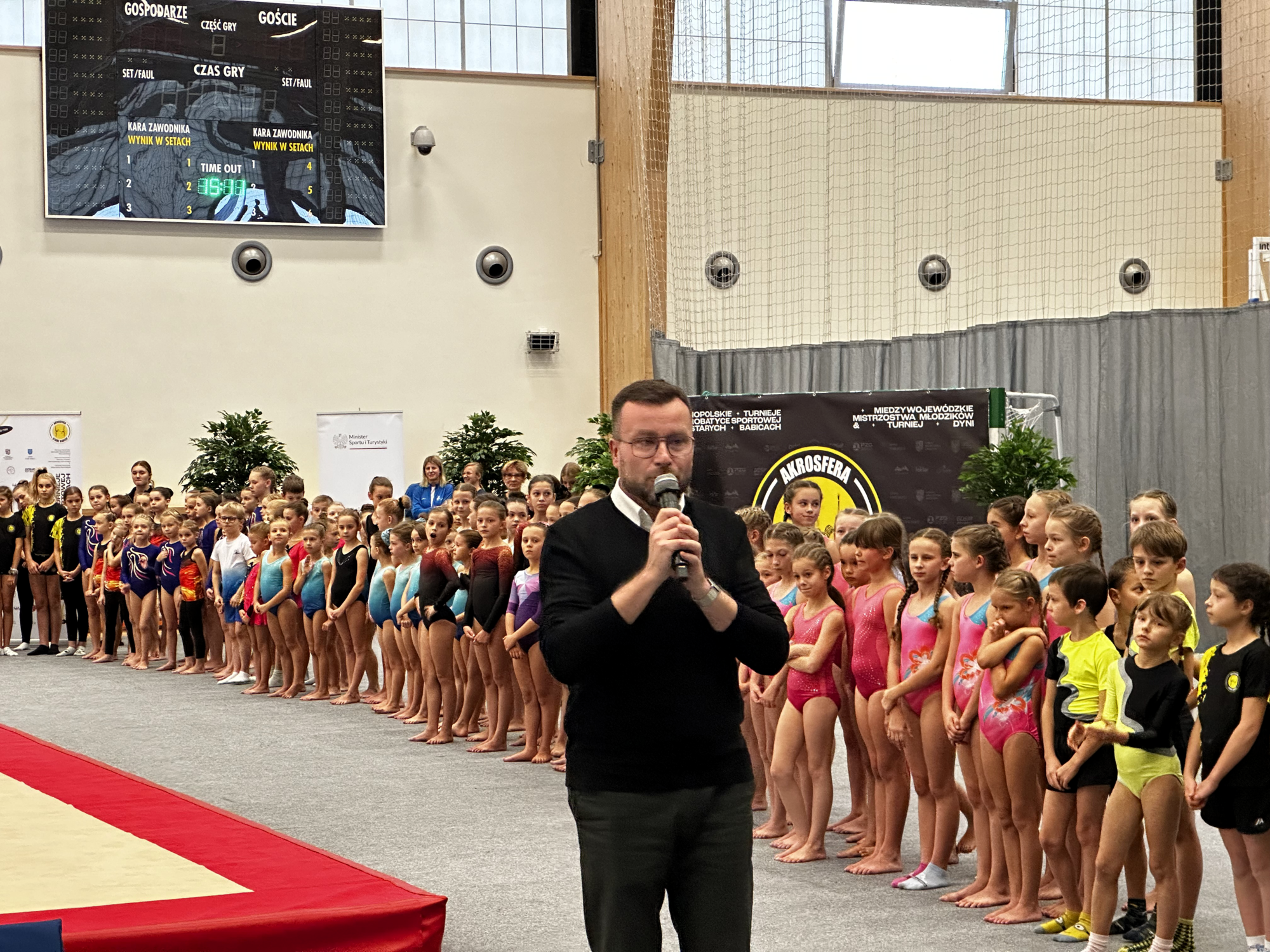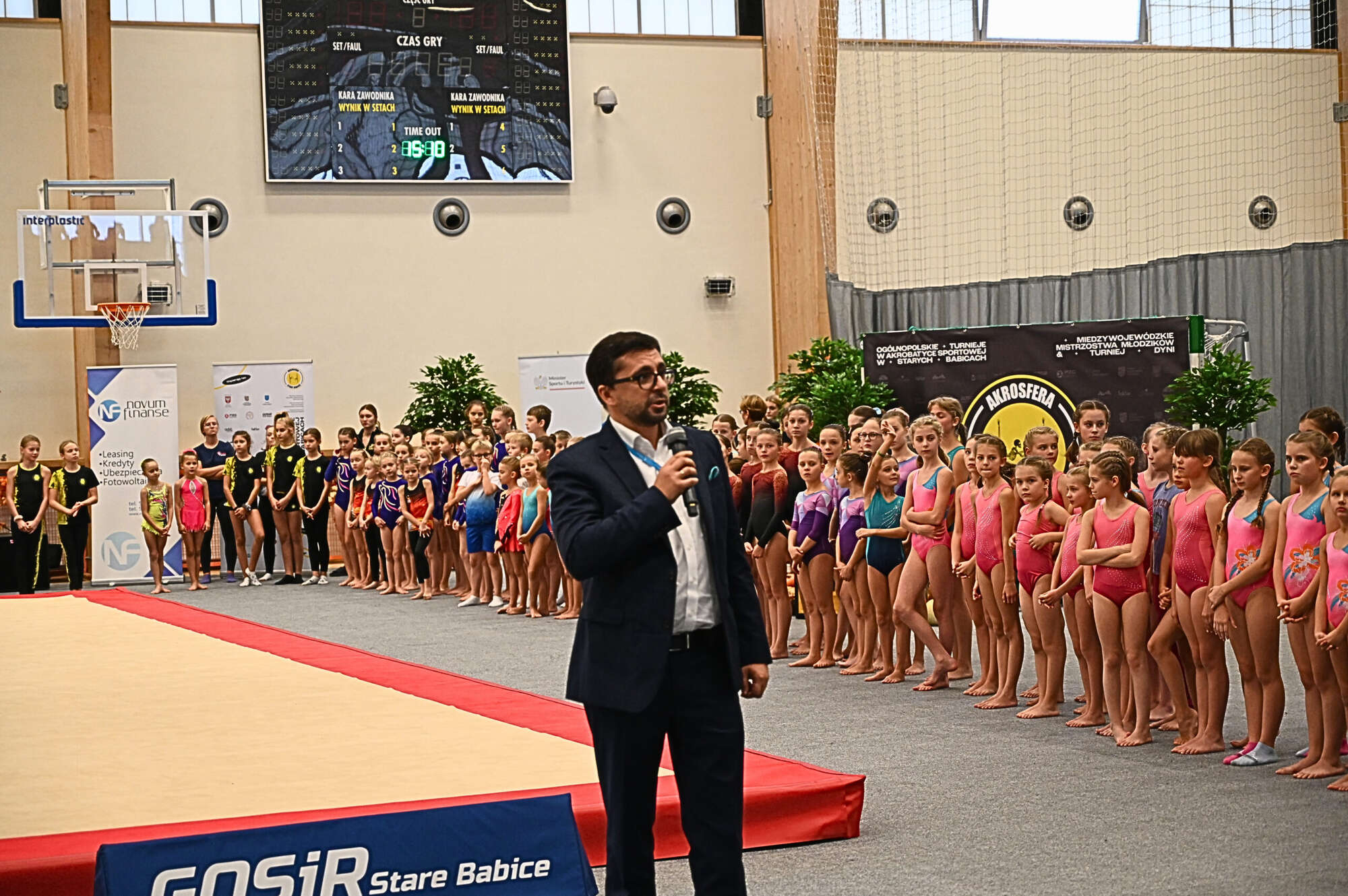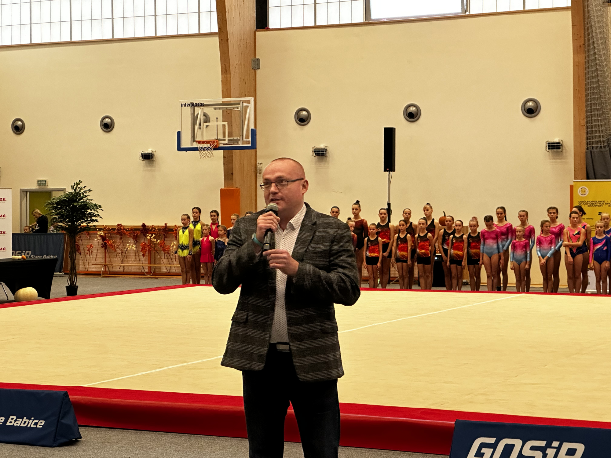 Po powitaniu uczestników i uczestniczek turnieju, jury i kibiców na trybunach przez Prezes UKS „Akrosfera” Panią Marikę Markiewicz głos zabrał Sekretarz Gminy Stare Babice Pan Michał Więckiewicz, który w imieniu Wójta Gminy Stare Babice Pana Sławomira Sumki przywitał wszystkich zgromadzonych. Przed rozpoczęciem konkurencji głos zabrali również Dyrektor GOSiR Stare Babice Pan Jarosław Płóciennik i Prezes WMZSG Pan Michał Bagała.