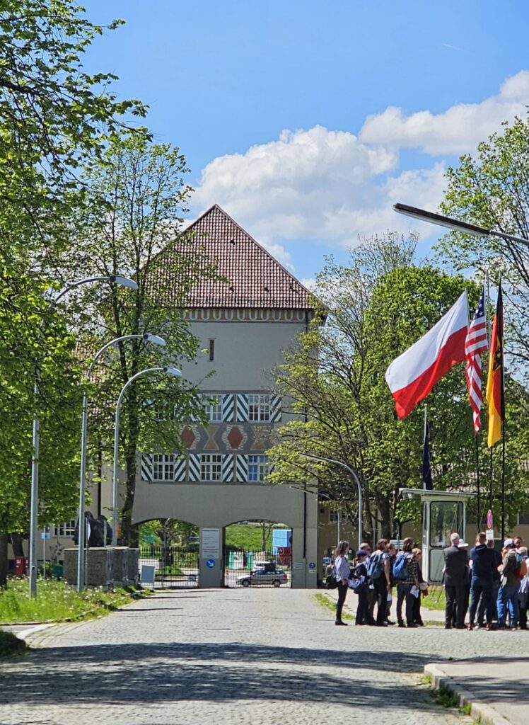 W pierwszej części uroczystości upamiętniającej 80. rocznicę wyzwolenia Oflagu VIIA w Murnau, przedstawiciele Gminy Stare Babice oddali hołd, składając kwiaty pod kamieniem pamiątkowym znajdującym się przy dawnym wjeździe na teren obozu.