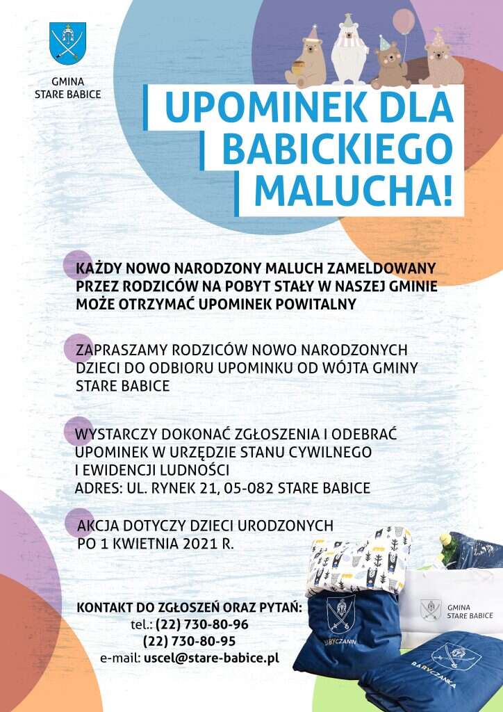 Przypominamy, że każdy nowo narodzony maluch zameldowany przez rodziców na pobyt stały w naszej gminie może otrzymać upominek powitalny.