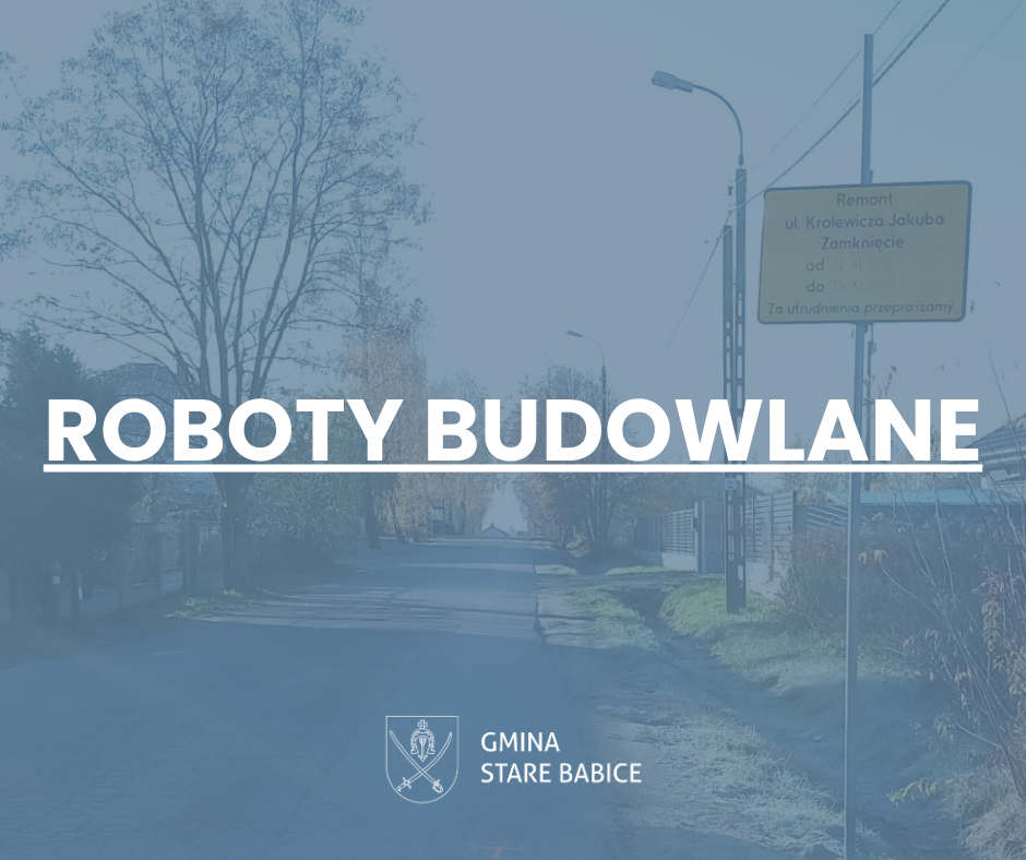 Informujemy, że w dniach 12-15 listopada 2024 r. (wtorek-piątek) prowadzone będą roboty związane z remontem nawierzchni drogi gminnej ul. Królewicza Jakuba w Wierzbinie – na odcinku między ul. Warszawską, a ul. Trakt Królewski.