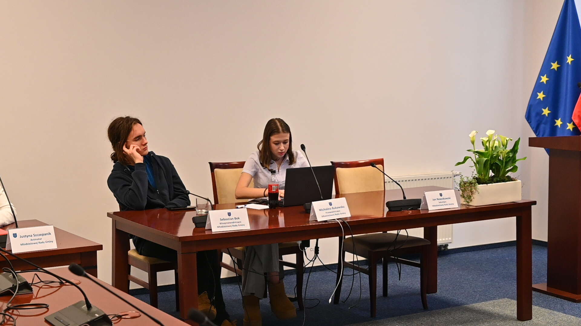 🙋‍♂️Na sesji obecny był Michał Więckiewicz Sekretarz Gminy Stare Babice oraz Pani Justyna Szczepanik opiekun Młodzieżowej Rady Gminy.