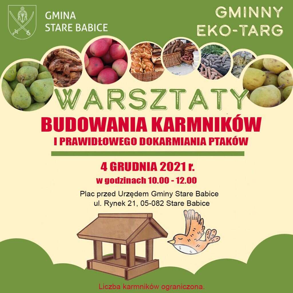 Zima tuż, tuż – zadbajmy więc o naszych skrzydlatych przyjaciół! Zapraszamy na najbliższy Gminny Eko Targ (4 grudnia 2021 r.), w ramach którego odbędą się kolejne warsztaty budowania karmników dla ptaków w godz. 10.00-12.00.