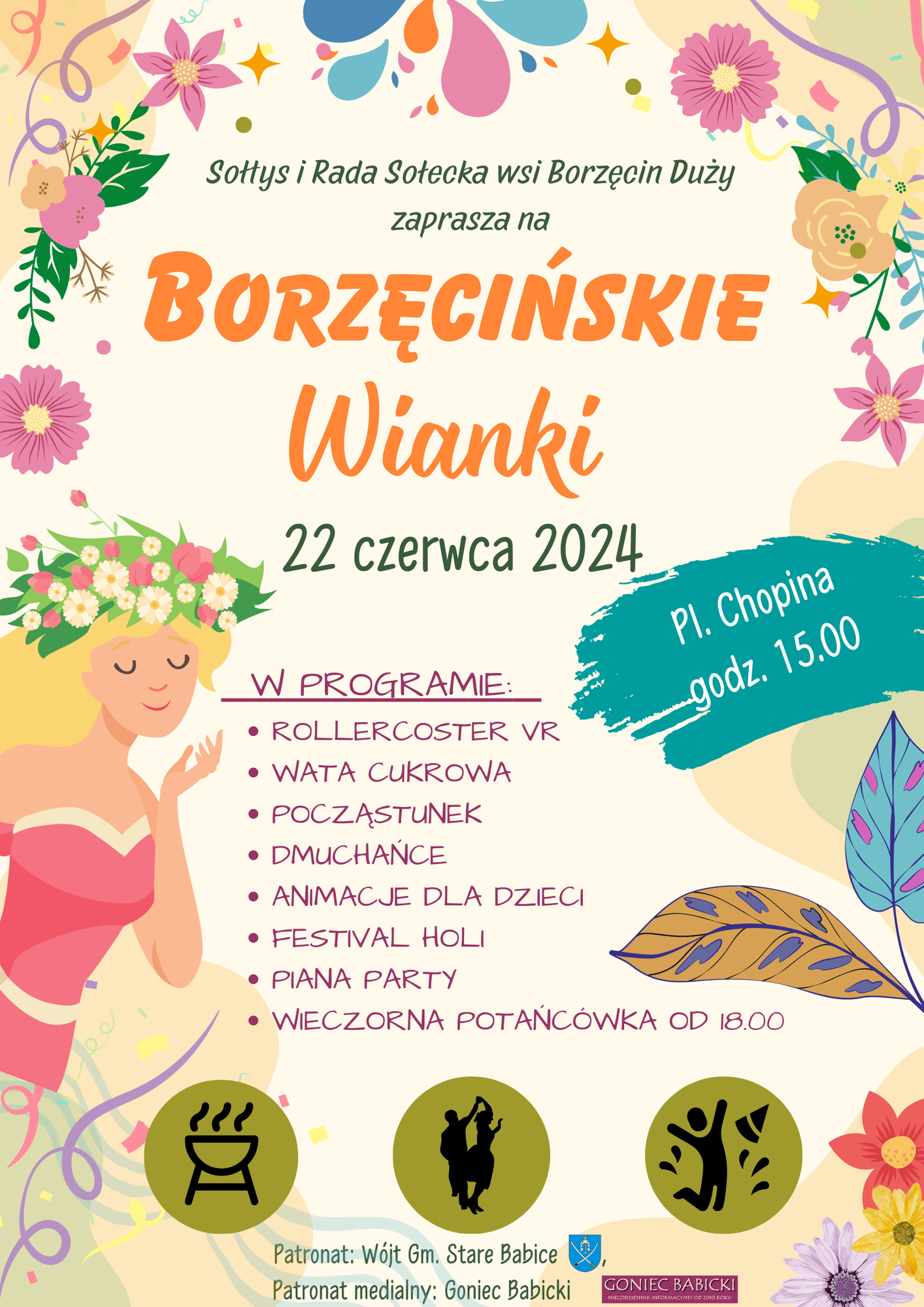 Już w najbliższy weekend w sobotę 22 czerwca br. o godzinie 15:00 odbędą się „Borzęcińskie Wianki”.