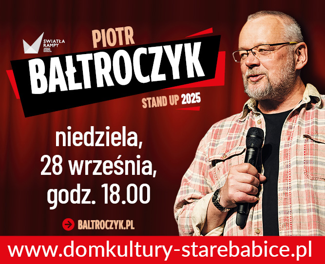 Dom Kultury Stare Babice serdecznie zaprasza na występ Piotra Bałtroczyka – mistrza inteligentnego humoru, autoironii i brawurowych anegdot!
