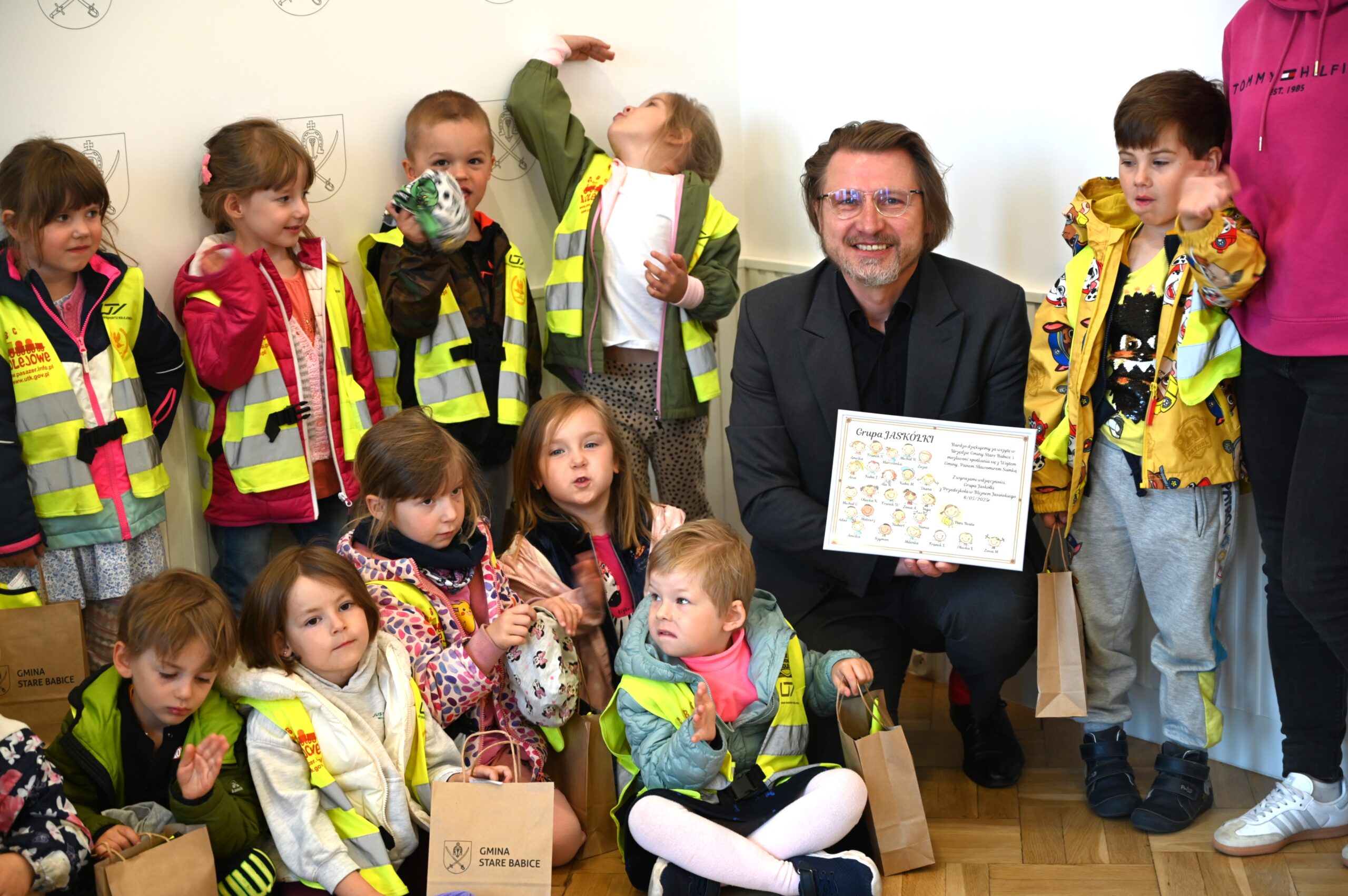 Dziś przedszkolaki z grupy „Jaskółka” z Przedszkola w Blizne Jasińskiego odwiedziły Wójta Gminy Stare Babice, Sławomira Sumkę.
