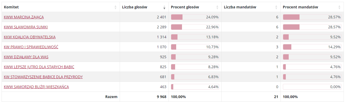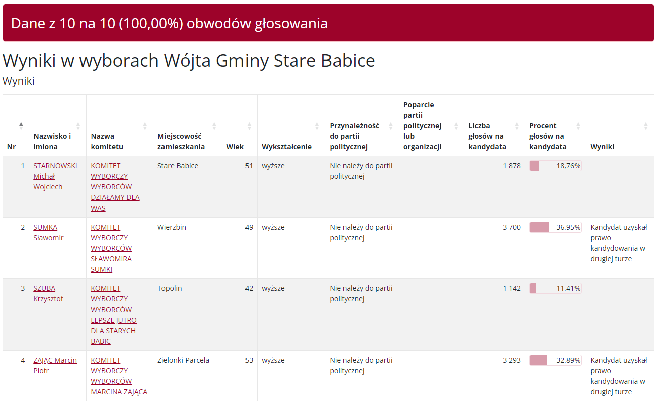 Drodzy Mieszkańcy, przedstawiamy wyniki w wyborach samorządowych w gm. Stare Babice.