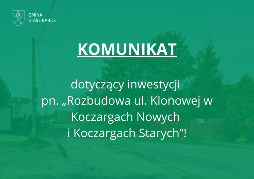 Zakończyliśmy inwestycję pn. „Rozbudowa ul. Klonowej w Koczargach Nowych i Koczargach Starych”. Przebudowa obejmowała odcinek ok. 1255 m od ul. Akacjowej w Koczargach Starych do ul. Trakt Królewski w Wojcieszynie i polegała m. in. na: