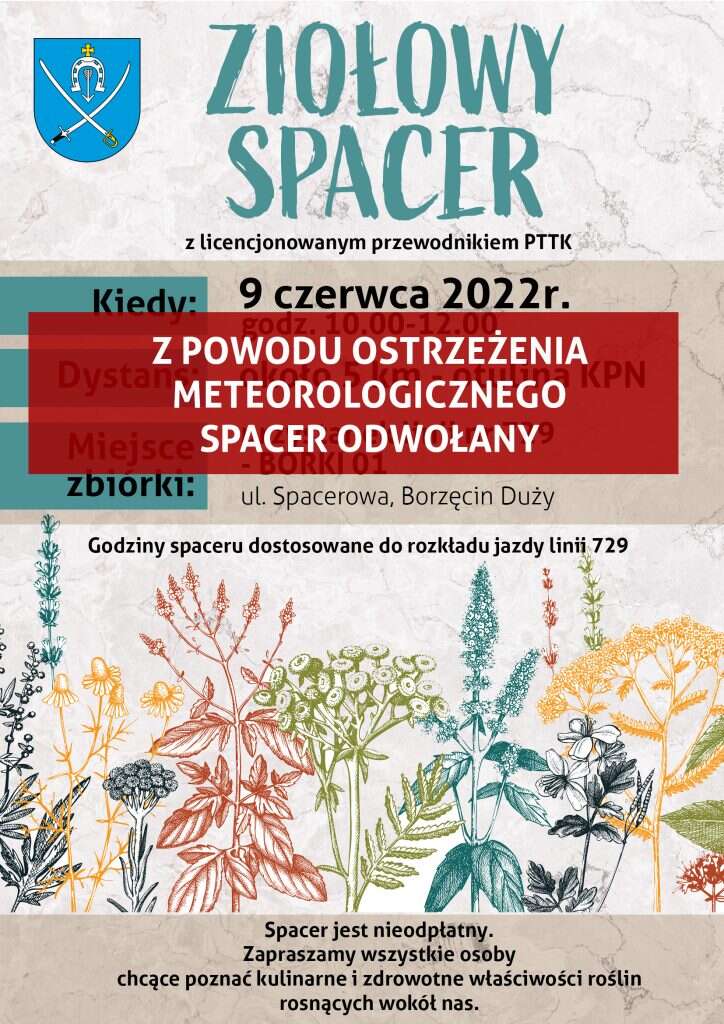 Jednocześnie mamy dobrą wiadomość dla naszych Mieszkańców. Z uwagi na duże zainteresowanie tematem, kolejny termin „Ziołowego Spaceru” zaplanowany zostanie w godzinach popołudniowych – dogodnych również dla osób pracujących.