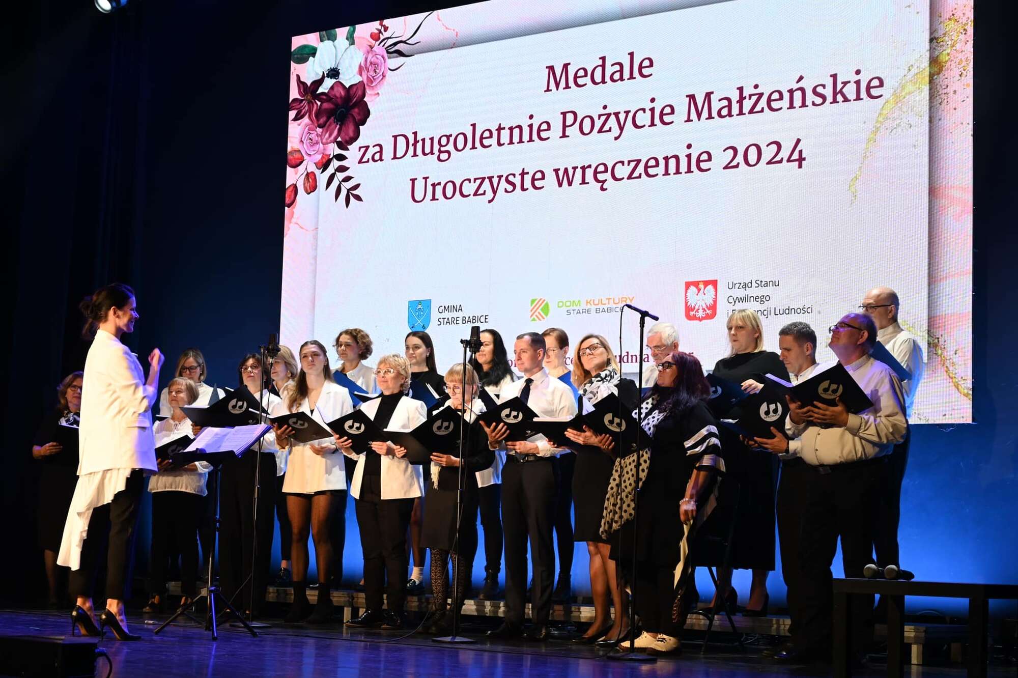 Oprawę artystyczną zapewnił Chór Aprobata działający przy Domu Kultury Stare Babice pod kierunkiem Aleksandry Troczyńskiej-Rucińskiej, który wykonał program muzyczny składający się z pięknych utworów o tematyce miłosnej przygotowany specjalnie z myślą o naszych Jubilatach.