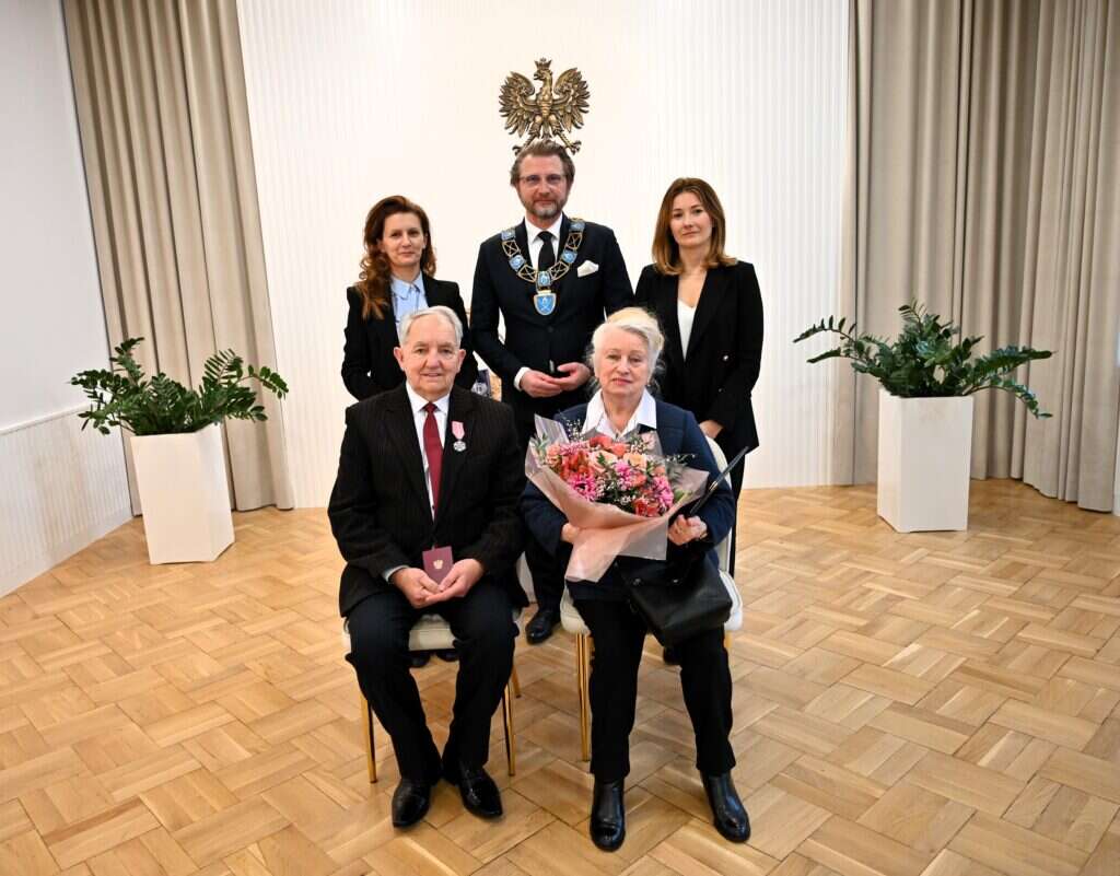 W dniu dzisiejszym, pierwszy raz w nowo otwartej sali ślubów Wójt Gminy Stare Babice Pan Sławomir Sumka dokonał uroczystego aktu dekoracji Państwa Haliny i Zenona Śliwińskich, Medalem za Długoletnie Pożycie Małżeńskie, przyznane przez Prezydenta Rzeczypospolitej Polskiej. Małżeństwo Państwa Śliwińskich obchodziło swoje 50- cio lecie, a ponieważ Jubilaci nie mogli uczestniczyć w ubiegłym roku we wrześniowej uroczystości w Domu Kultury, wręczenie odbyło się dzisiaj przy udziale Kierownika USCiEL Pani Magdaleny Łagun- Paszek oraz Zastępcy Kierownika USC Pani Anny Łuczak.